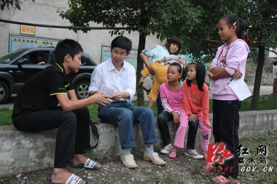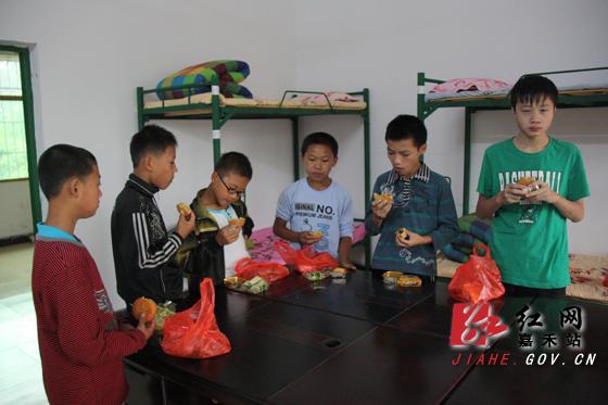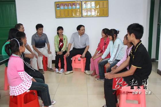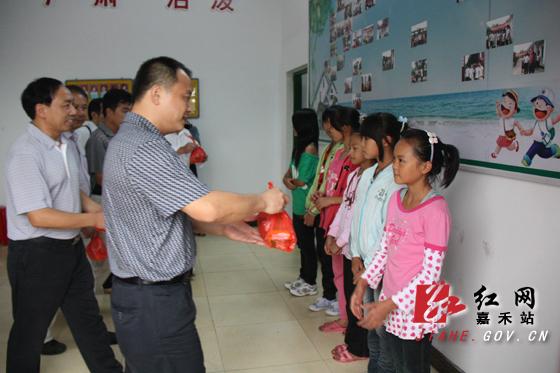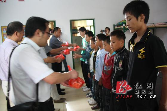 副县长李佩军和民政局班子成员给孤儿发月饼