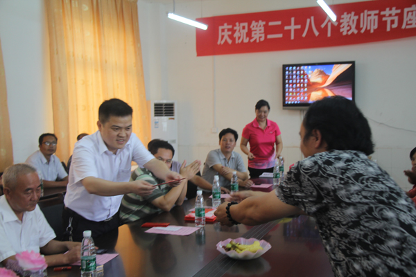 县委常委、宣传部长巫初华给民办学校负责人颁发奖金