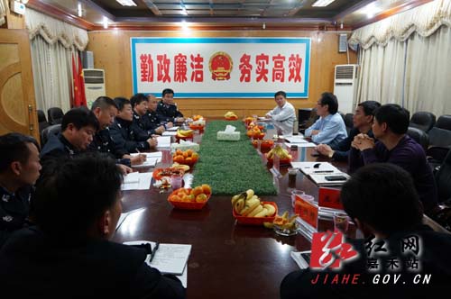 座谈会上,张志伟向唐国栋一行作了详细工作情况汇报。今年10月份以来,嘉禾县公安局新一届领导班子在市委、市政府、市公安局和县委、县政府的正确领导下,团结带领全局民警,以饱满的热情、扎实的作风,全面落实各项维稳安保工作措施,重拳整治社会治安热点难点问题,确保了全县特别是“党的十八大”期间社会政治、治安大局稳定。