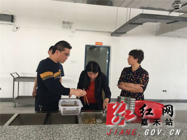 曾丽玲)"今天吃什么菜?我尝尝看味道如何。"4月9日,嘉禾县教育局负责人向文家学校食堂工作人员询问饭菜花色品种,并亲口品尝饭菜是否新鲜。