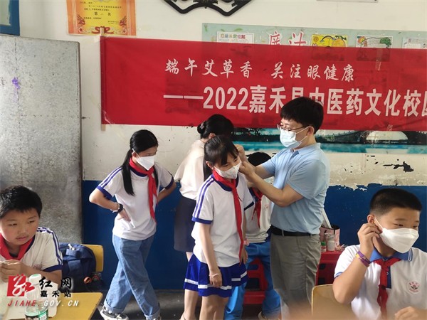 红网嘉禾分站(通讯员 雷丰顺)近日,嘉禾县卫生健康局、县中医医院工作人员来到县尊崇学校,开展以“端午艾草香·关注眼健康”为主题的中医药文化进校园活动。