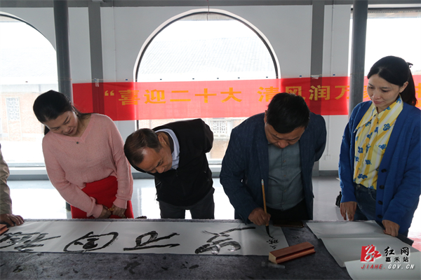 红网嘉禾分站(通讯员 李文飞)10月9日,嘉禾县文联、县妇联组织20多名书画爱好者到1958文创园开展“喜迎二十大·清风润万家”书画笔会,用书法作品向党的二十大献礼。