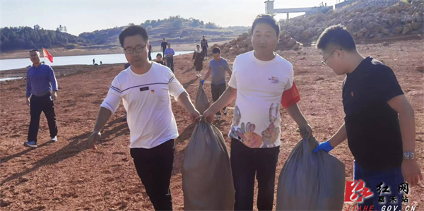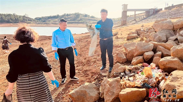 活动中,党员们沿着干涸的水库河床,对周边的生活垃圾进行清理。大家发扬“不怕脏、不怕累”的精神,奋战一个小时后,水库变得干净整洁。随后,党员们对清理的垃圾进行分类清运。