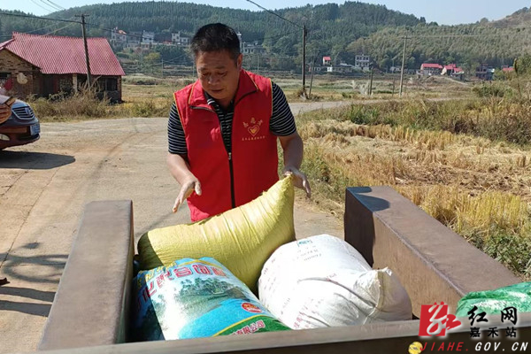 红网嘉禾分站(通讯员 邓和明 李柏翠)“真是太感谢你了。”10月22日,普满乡向阳村8组的村民李代文看着已经装好车的满满一车稻谷,拉着满头大汗的志愿者彭飞的手,感激之情溢于言表。