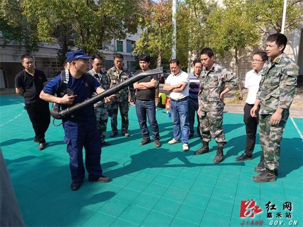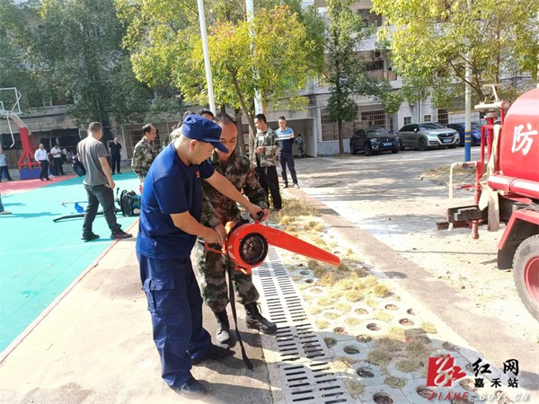演练现场,县消防大队消防员对鼓风机、液压式喷雾器、消防水枪等灭火器具的使用进行了详细讲解和示范,并带领大家实操联系消防水带的连接及水枪的操作方法。