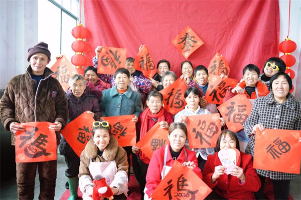 活动现场暖意融融、墨香四溢。县文联、县书法家协会的老师及书法爱好者挥毫泼墨,一幅幅寓意吉祥的春联、一个个遒劲有力的“福”字在笔尖流转而生。“致富路上跟党走,振兴乡村万象新”,字里行间承载着对新年的美好期许,村民们手持春联和“福”字,脸上洋溢着幸福的笑容,现场一派热闹祥和的景象。大家一边欣赏一边挑选心仪的春联,浓浓的年味儿扑面而来。此外,志愿者们将福字、对联送到行动不便的老年人手中,轻声送上 “新春快乐、健康长寿” 的祝福,接过福礼的老人们脸上洋溢着幸福的笑容,现场满是欢声笑语。