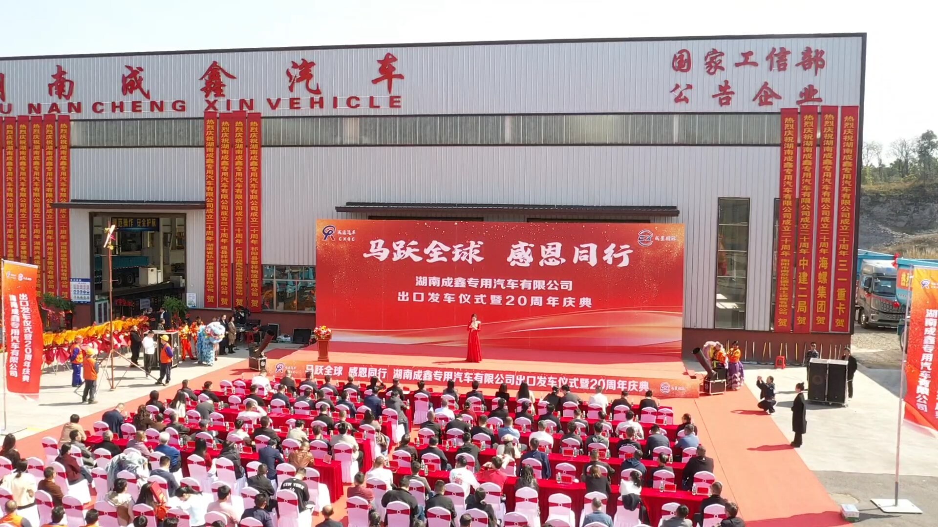 红网嘉禾分站3月12日讯(通讯员:曾靓 关进 李琳)3月13日,湖南成鑫专用汽车有限公司举行成立二十周年庆典,51台量身定制的“成鑫造”专用汽车同步启运,发往非洲、东南亚市场。当日,该公司二期工厂正式竣工投产,标志着这家深耕专用汽车领域二十年的“专精特新”企业,在全球化布局中迈出坚实一步。