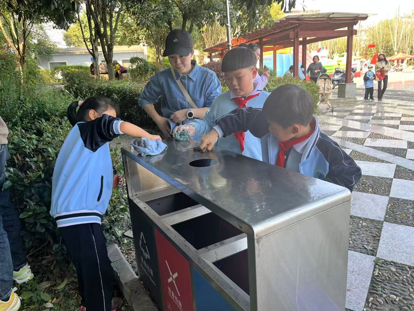 活动中,同学们用行动诠释“敬”与“爱”:2402班赠书传情,2406班争当公园小管家,2408班家校携手美化校园,2410班走进广场清扫保洁……一个个忙碌的身影,成为春日里最温暖的风景。