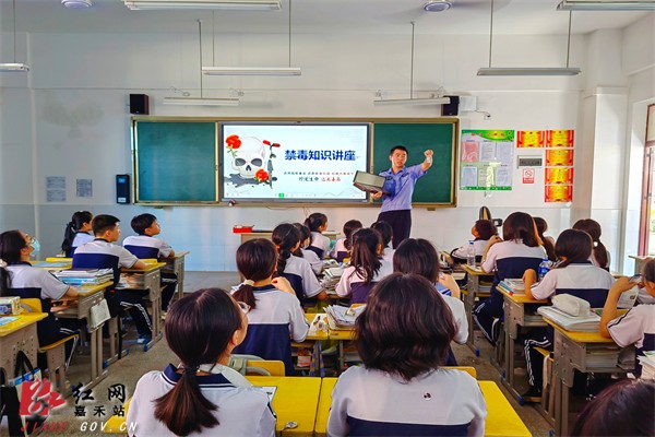 “青少年如何自卫防毒?”“毒品会伪装成什么?”“奶茶粉是毒品吗?”课堂一开始,民警便向学生提出问题,引导大家思考,针对青少年好奇心强、辨别能力弱、容易受到诱惑等心理特点,依托图文并茂的PPT课件,通过播放动画短视频、讲述真实典型事例等方式,用通俗易懂的语言深入浅出地讲解传统毒品、合成毒品及新精神活性物质的相关知识及危害。