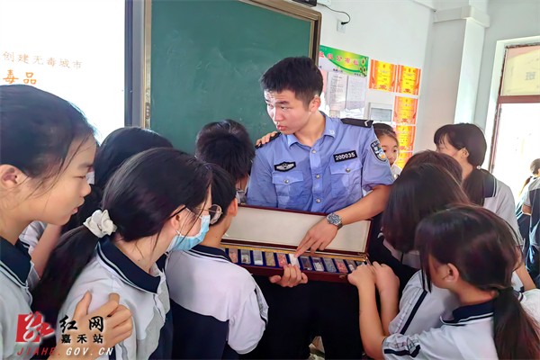 课上,民警展示了多种仿真毒品模型,揭开了与零食外观极为相似的“跳跳糖”“奶茶”“邮票”等新型毒品的“伪装”,学生们不约而同地凑近仔细观察,在民警的引导下,认识毒品的外观、种类和特征,有效提高了识毒、防毒、拒毒能力。