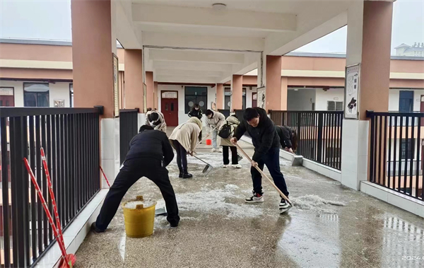 “龙吟九霄,祥风万里。”在这个祥和而又富有活力的龙年,嘉禾县珠泉二完小迎来了新的学期。2月25日上午,为确保师生安全,创设干净、安全的校园环境,嘉禾县珠泉二完小领导班子及教师齐聚校园,携手合力铲除学校台阶、走廊、过道上的冰雪,为孩子们开通一条洋溢着爱与温情的安全之路。