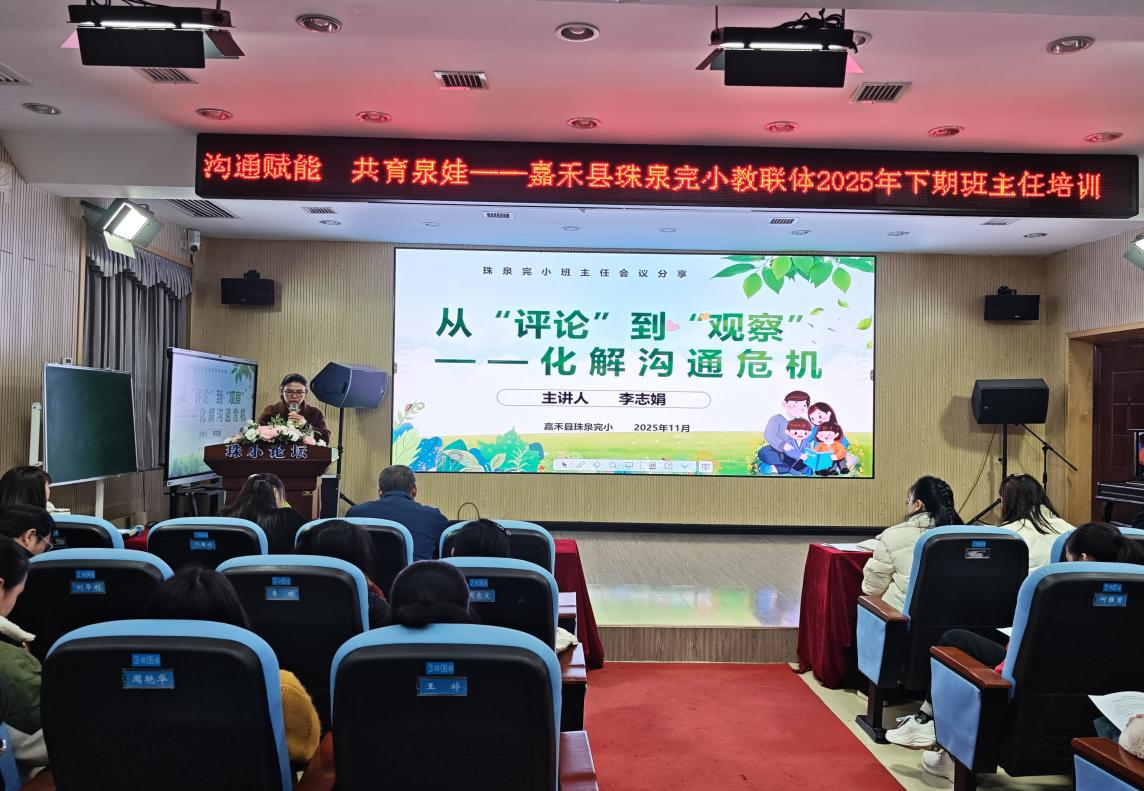 红网嘉禾分站11月24日讯(通讯员:雷航宇 唐石保)为助力班主任破解家校沟通等工作难题,11月20日,嘉禾县珠泉完小教联体以“沟通赋能 共育泉娃”为主题,召开2025年下期第二期班主任培训会议,教联体各成员校共96名教师参加。