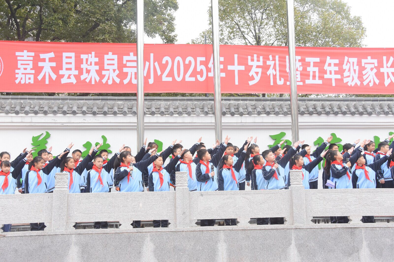 红网嘉禾分站12月10日讯(通讯员:彭乐智 王丽霞 李琴)12月10日,五年级全体学生身着整洁校服,满怀期待汇聚于此。升旗仪式庄重开启,雄壮的国歌声中,鲜艳的五星红旗冉冉升起,十岁礼活动的序幕在庄严氛围中缓缓拉开。这一刻,孩子们站在稚年的尾巴上,即将迈向人生新阶段,眼神中闪烁着对成长的憧憬与敬畏。