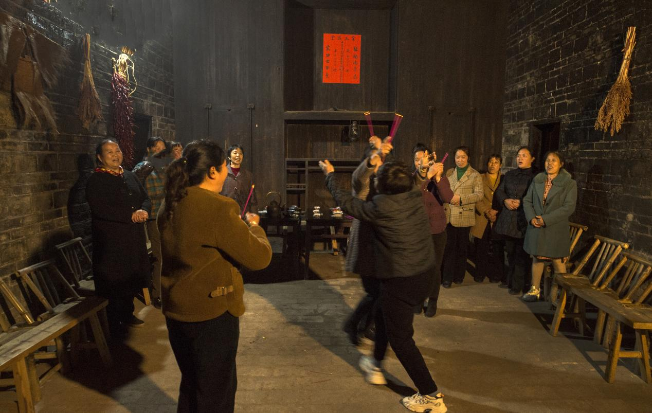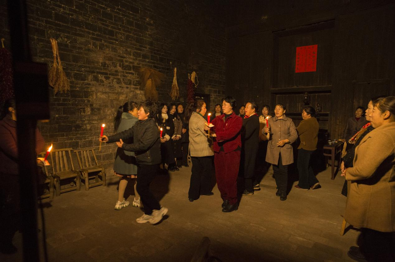 我看见“换香舞”。妇人们,手拿线篆香,在歌声中移步互相交换。那一刻,交换的不仅是香,更是这个家族血脉与福祉的郑重托付与香火绵延的无声盟誓。我又看见“走火舞”。伴嫁的姑嫂们,手捧点燃的红烛,列成队,在方寸之地反复回旋穿梭。烛光连成一条流动的火龙,映亮每一张激动而虔诚的脸。那烛光,驱散的是未知的黑暗与邪祟,照亮的是未来生活的每一步;那回旋,是依依不舍的流连,也是生生不息的祈愿。